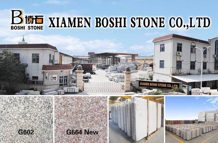 Xiamen Boshi Stone Co, .Ltd, se estableció en 1996. Nuestra fábrica ubicada en la ciudad de piedra de China: Shuitou Nanan.30KM de Xiamen. Como fabricante experimentado de piedra, nuestros materiales principalmente incluyen G664N, G687N, G603, G602, G333, G666, G635, G682, G636. Nuestros productos incluyen: azulejos de granito y mármol, losas, escalones, encimeras, bordillos, paisaje, lápidas, tallado; Cuarzo y piedra artificial, etc.